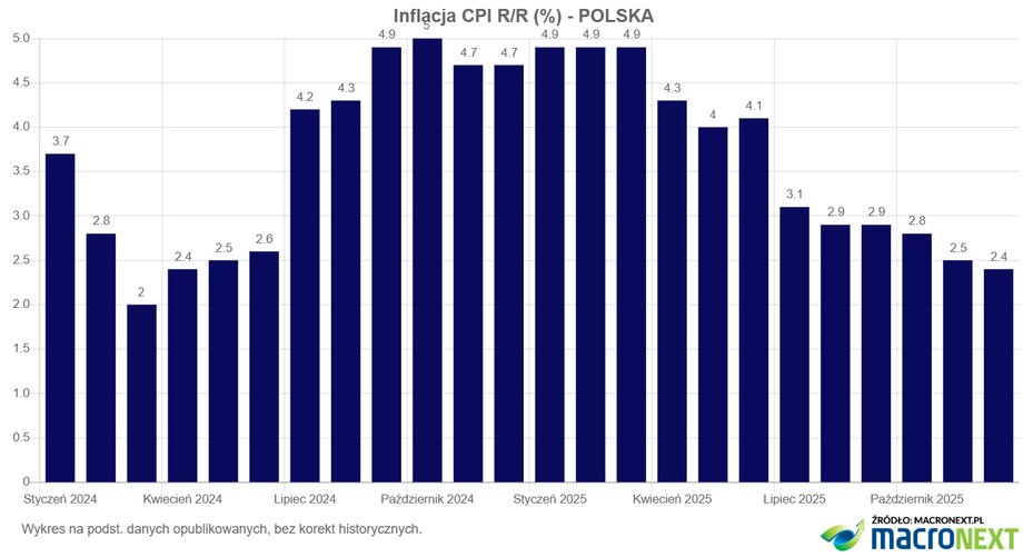 To najniższa wartość inflacji w Polsce od połowy 2024 roku. W tym czasie wskaźnik dochodził nawet do 5 proc. Rok temu był na poziomie 4,7 proc.