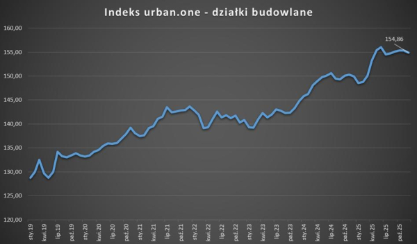 Po kilkumiesięcznej przerwie, w grudniu nastąpił spadek indeksu urban.one, przedstawiającego sytuację na rynku gruntów pod zabudowę. W ostatnim miesiącu 2025 r. zarejestrowano 154,86 pkt – o 0,47 pkt mniej niż w listopadzie.