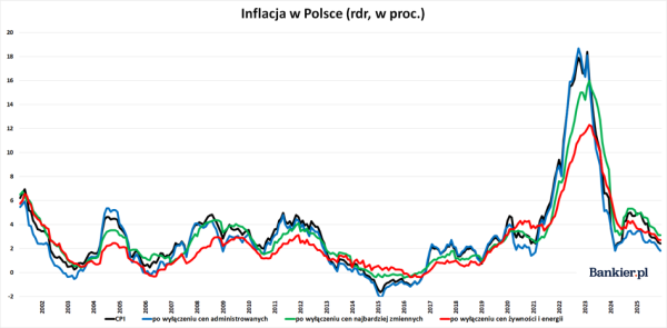 Z danych NBP wynika, że w grudniu 2025 roku inflacja bazowa utrzymała się na niezmienionym, najniższym poziomie od 6 lat. Mimo to, nadal nieznacznie przekraczała cel banku centralnego wynoszący 2,5 procent.
