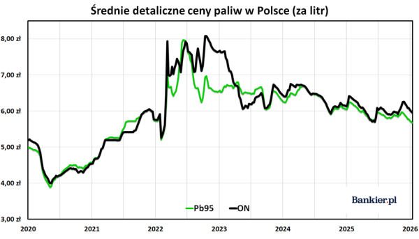 Wskaźnik CPI w grudniu 2025 roku ukształtował się na poziomie 2,4%, plasując się nieznacznie poniżej 2,5-procentowego założenia Narodowego Banku Polskiego. Głównie za sprawą tego, iż ceny paliw były mniejsze niż przed rokiem.