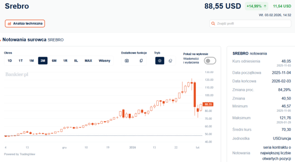 Poprzednie powiększenia notowań na rynkach metali (gdyż drożało nie tylko złoto i srebro, ale także platyna, pallad czy miedź i cynk) można było jeszcze jakoś uzasadnić. Co zresztą analitycy wytrwale próbowali robić, przywołując motyw oddalenia się od dolara i amerykańskich obligacji państwowych, zaostrzenie ryzyka geopolitycznego przez prezydenta USA Donalda Trumpa (który niespodziewanie zażądał Grenlandii) lub po prostu mówiąc o „niestabilnych czasach”. A później zjawił się krach.